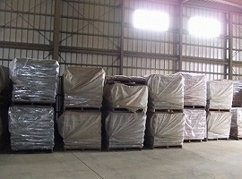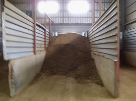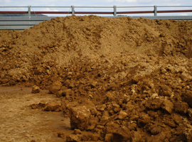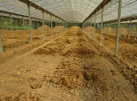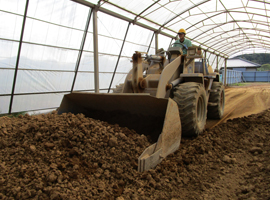 運搬された赤玉土を原料ハウス内で保管します。