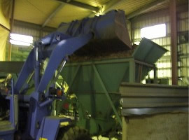 赤玉土をローダーを使い原料ホッパーに投入します。