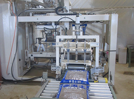 包装機で、赤玉土を袋詰めします。